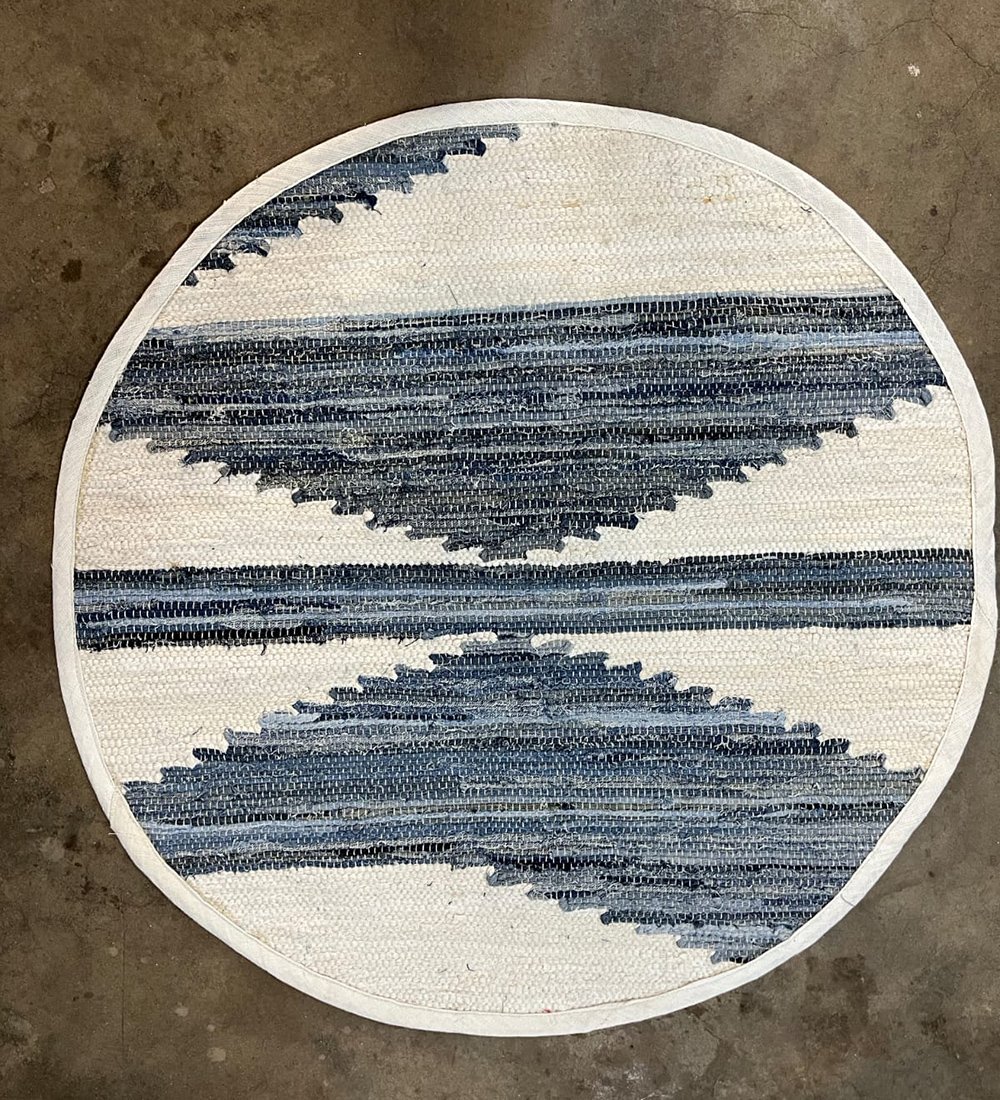 Blue & White Unique Design Round Shape Rug & Carpet