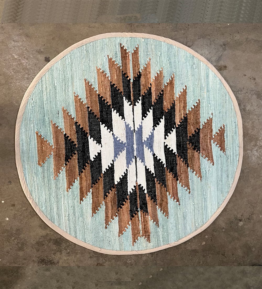 Geometric Design Round Carpet & Rug – Light Base with Black, Brown, and White Accents