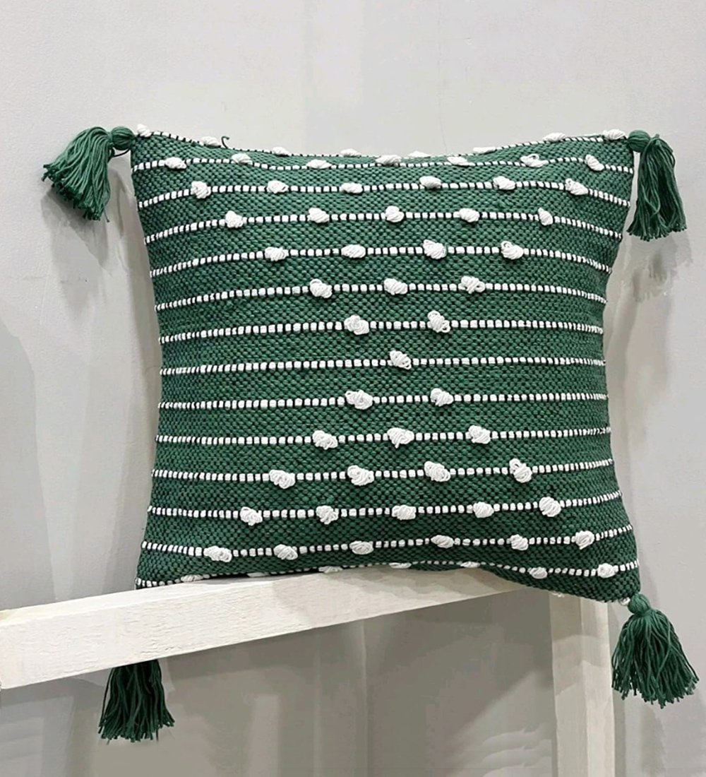 Green Cotton Handloom Tufted Cushion Cover – Knock-Off Design