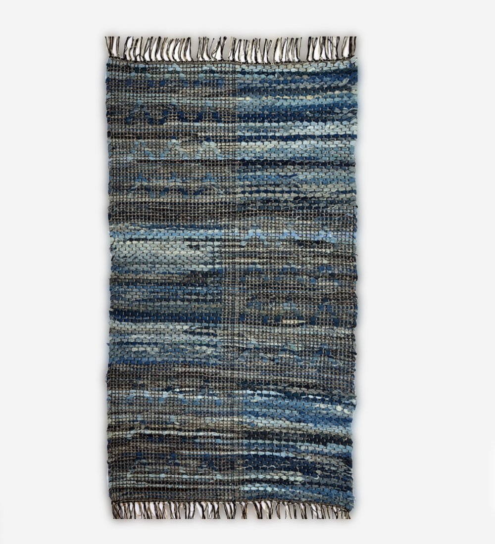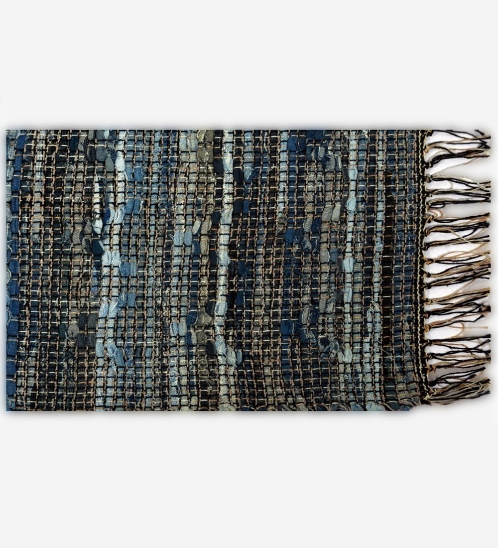 Handcrafted Geometric Denim Rug