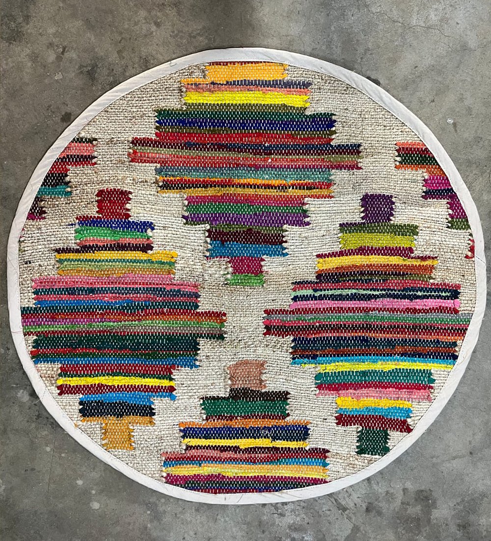 Multicolor Round Shape Rug & Carpet with Cream Geometric Border Design