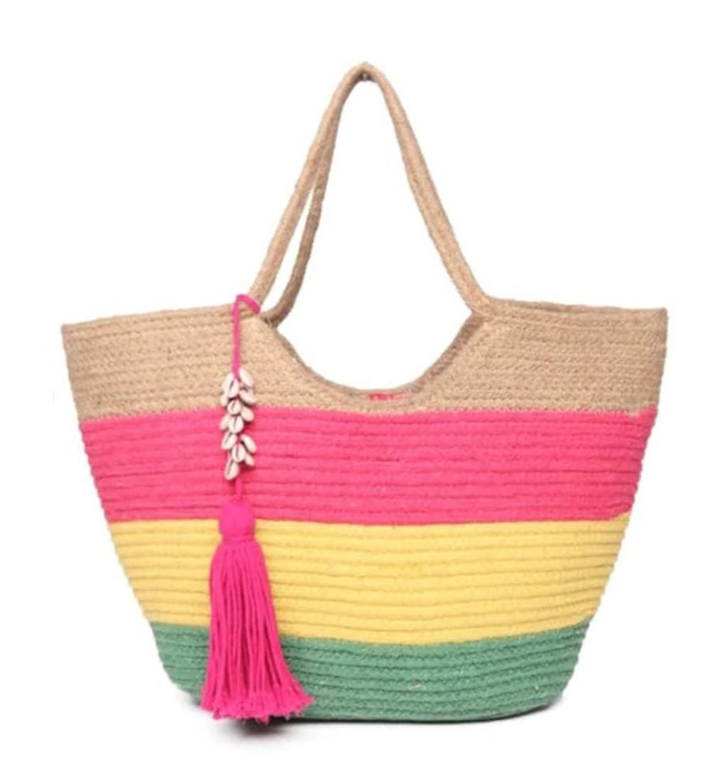 Pink, Green & Yellow Jute Rug Purse – Eco-Friendly & Stylish
