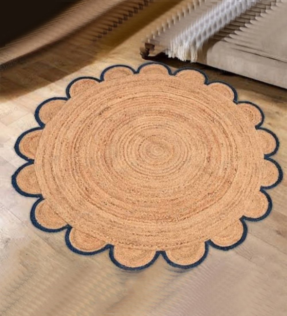 Zigzag Round Jute Rug Carpet – Light Brown with Black Border